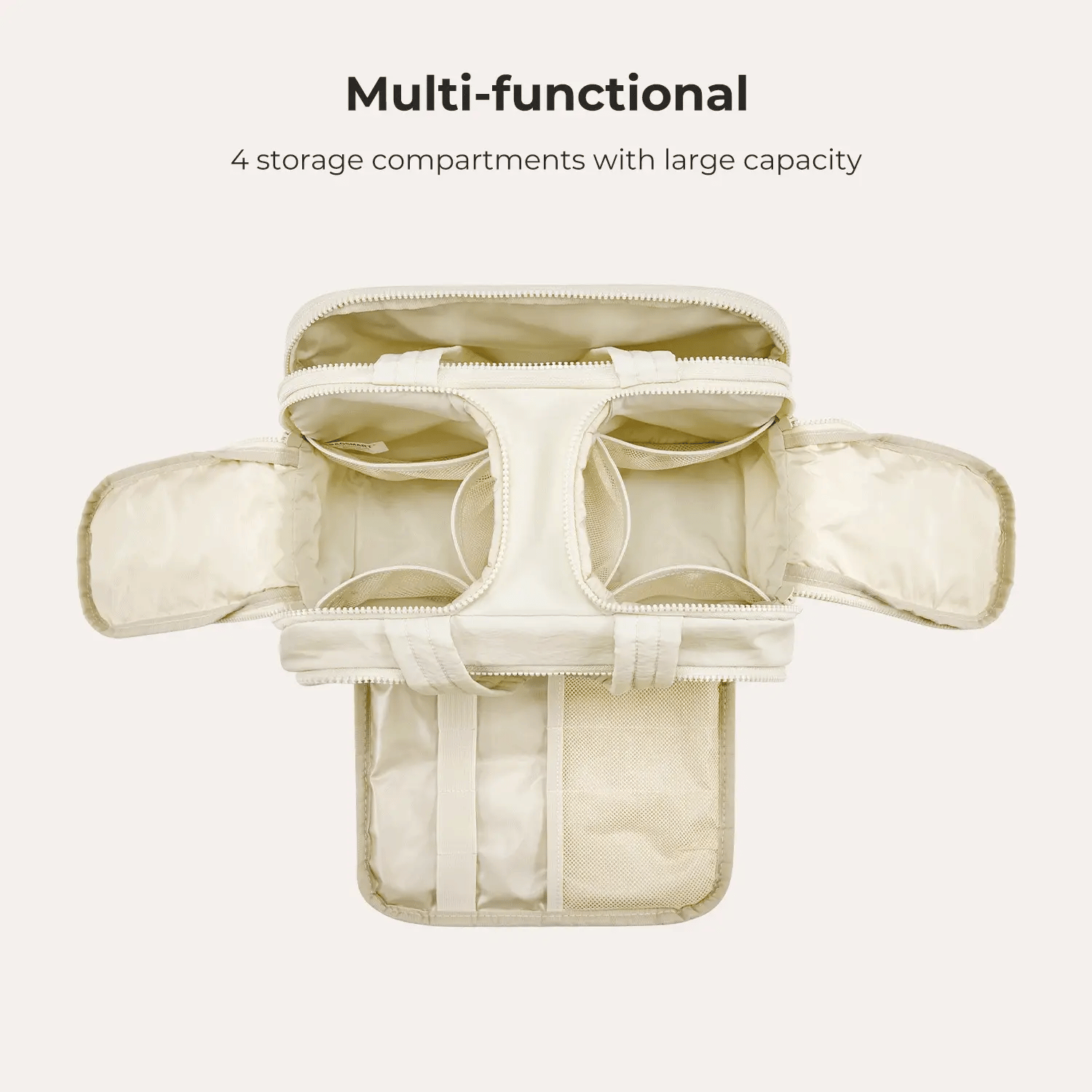 This bag is perfection! I can fit all of my makeup, hair products, and personal care products in it for traveling. Several compartments make organizing easy and efficient. I love it so much that I bought 4 more to give to my daughters-in law and my best friend!