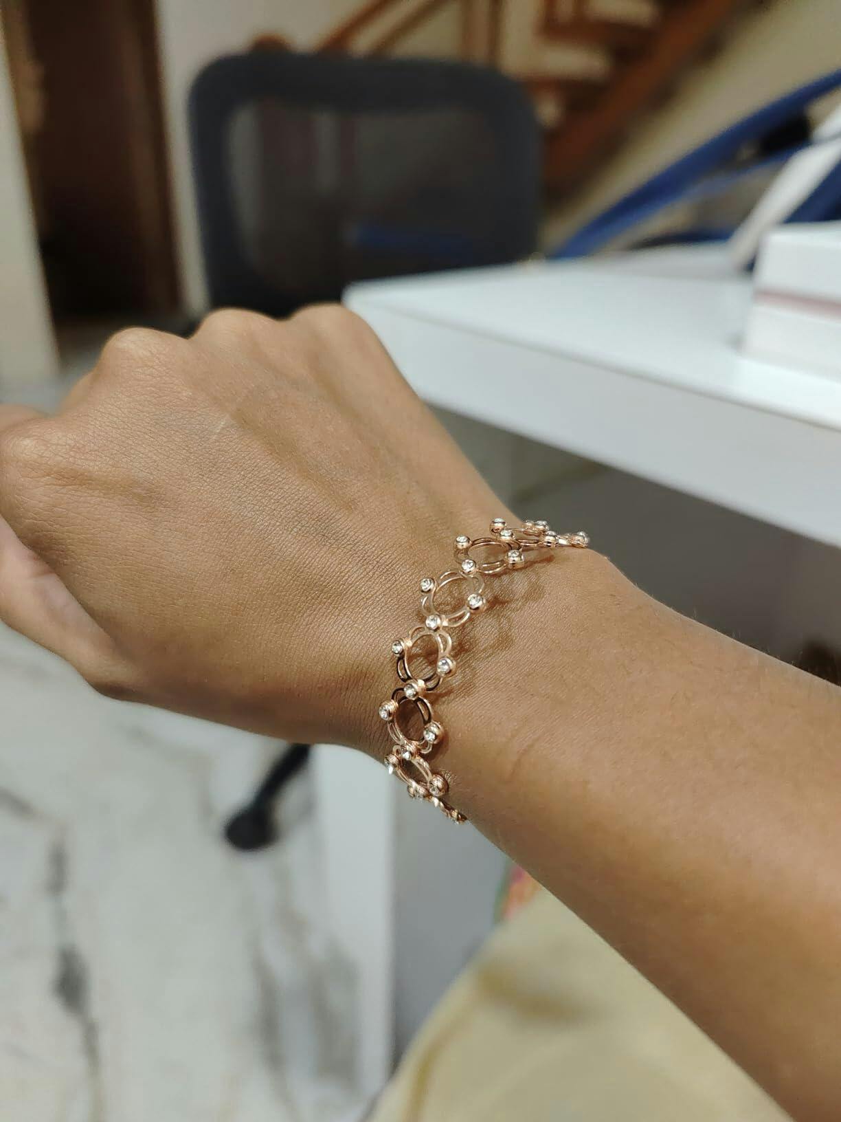 Wear it as a ring with matching rose gold earrings for a minimal, classy look — or as a bracelet stacked with bangles or a sleek watch for bold, modern vibes.
